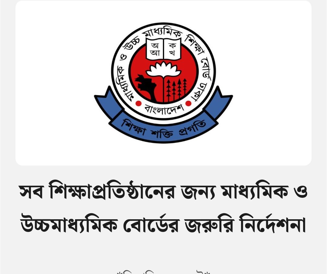 সব শিক্ষাপ্রতিষ্ঠানের জন্য মাধ্যমিক ও উচ্চমাধ্যমিক বোর্ডের জরুরি নির্দেশনা