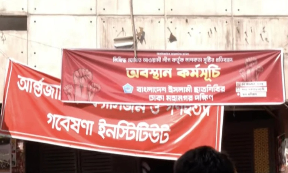 এরমধ্যে বাংলাদেশ ইসলামী ছাত্রশিবির ঢাকা মহানগর দক্ষিণের ‘অবস্থান কর্মসূচি’ এবং জুলাই আন্দোলনে আহত ও নিহতদের পরিবারের সদস্যদের প্ল্যাটফর্ম ‘জুলাইযোদ্ধা সংসদের’ ব্যানার টাঙাতে দেখা গেছে। এ ছাড়া ইনকিলাব মঞ্চের নেতাকর্মীরাও সেখানে উপস্থিত ছিল।
