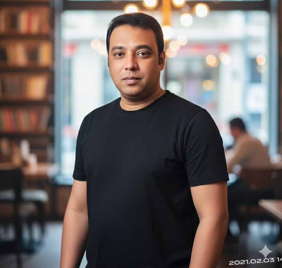 কালো টি-শার্টে দাঁড়িয়ে এক নীরব ছবি,