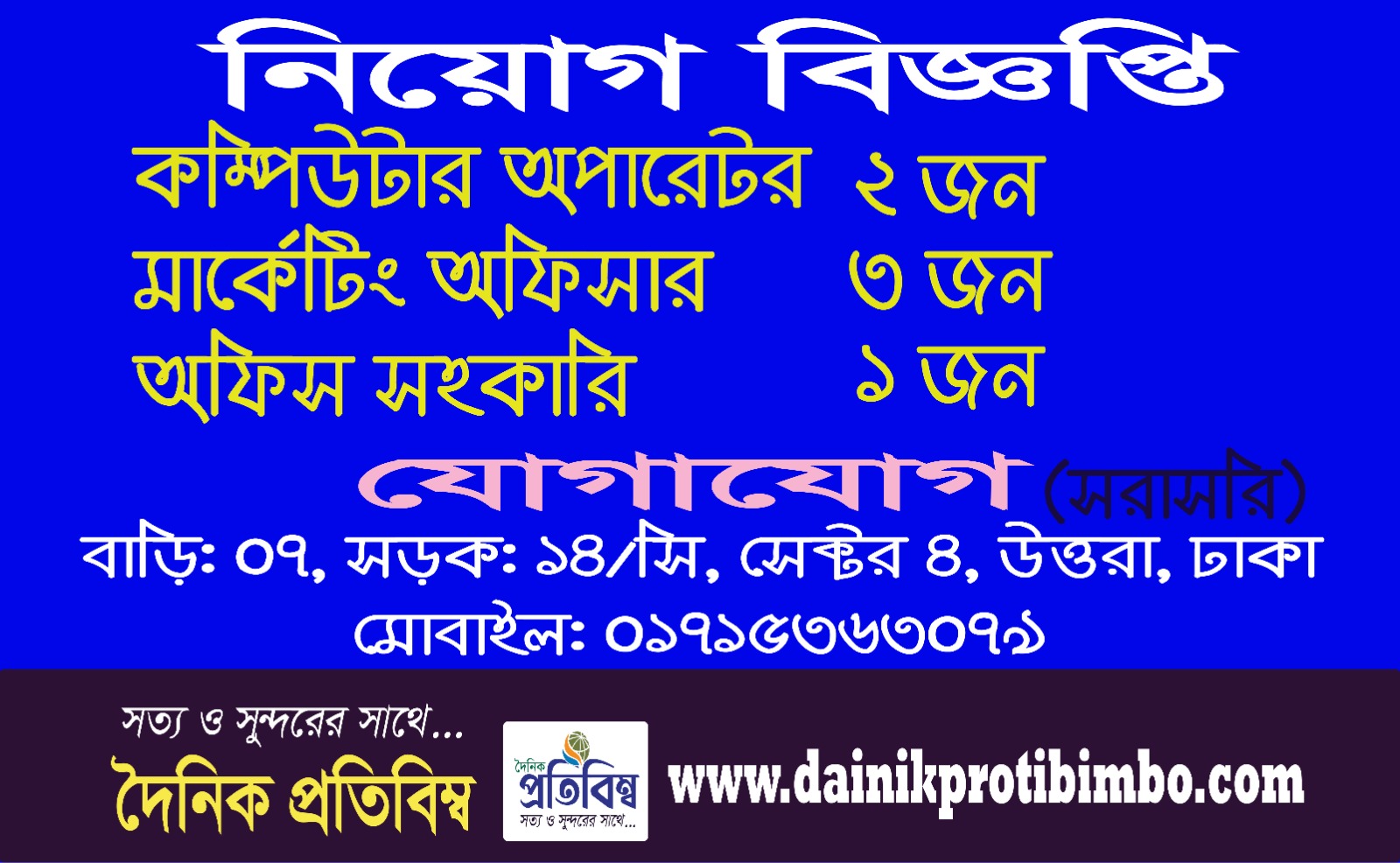 ওয়েব: www.dainikprotibimbo.com