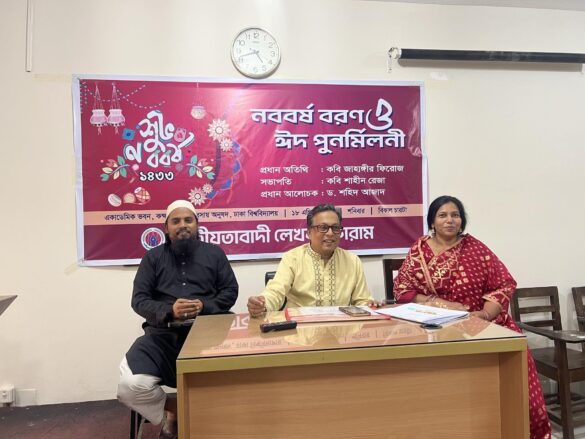 ১৮ এপ্রিল ২০২৬ শনিবার বিকেলে , ঢাকা বিশ্ববিদ্যালয়ের ব্যবসায় প্রশাসন অনুষদের প্রশাসনিক ভবনে আয়োজিত এ অনুষ্ঠানে সভাপতিত্ব করেন জাতীয়তাবাদী লেখক ফোরামের সভাপতি কবি ও সম্পাদক শাহীন রেজা। প্রধান আলোচক ছিলেন ফোরামের সাধারন সম্পাদক কবি ও শিক্ষাবিদ ড.শহিদ আজাদ।