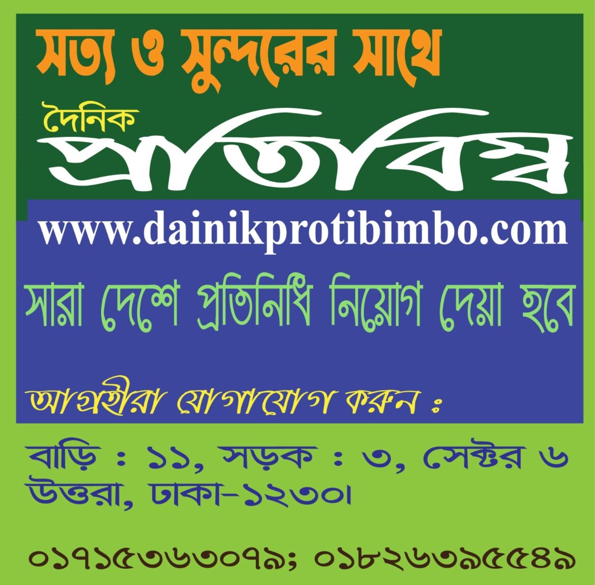বাড়ি: ১১ (নিচতলা), সড়ক: ০৩, সেক্টর: ০৬, উত্তরা, ঢাকা-১২৩০।