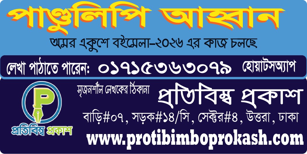 আপনার বইয়ের নির্ভুল, নিখুঁত, গুণগত মানসম্পন্ন বই প্রকাশ-বিপণন, প্রচার ও প্রসারে আপনাদের বিশ্বস্ত অংশীদার-প্রতিবিম্ব প্রকাশ।