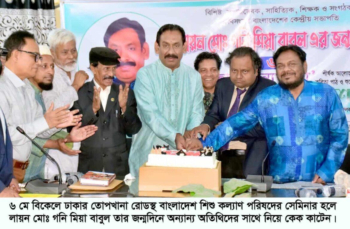 সাহিত্যিক, সমাজসেবক, সাংস্কৃতিক ব্যক্তিত্ব ও কবিসংসদ বাংলাদেশের কেন্দ্রীয় সভাপতি লায়ন মো. গনি মিয়া বাবুল এর ৫৫তম জন্মদিন নানা আয়োজনে ৬ মে বিকালে ঢাকার তোপখানা রোডস্থ বাংলাদেশ শিশু কল্যাণ পরিষদের সেমিনার হলে নানা আয়োজনে উদযাপন করা হয়। এ উপলক্ষে কবিসংসদ বাংলাদেশের উদ্যোগে ‘মানবতার জন্যে সেবা’ শীর্ষক আলোচনা সভা, কবিতা পাঠ, কেক কাটা, দোয়া মাহফিল ও ফুলেল শুভেচ্ছা প্রদান প্রভৃতি কর্মসূচি পালন করা হয়।
