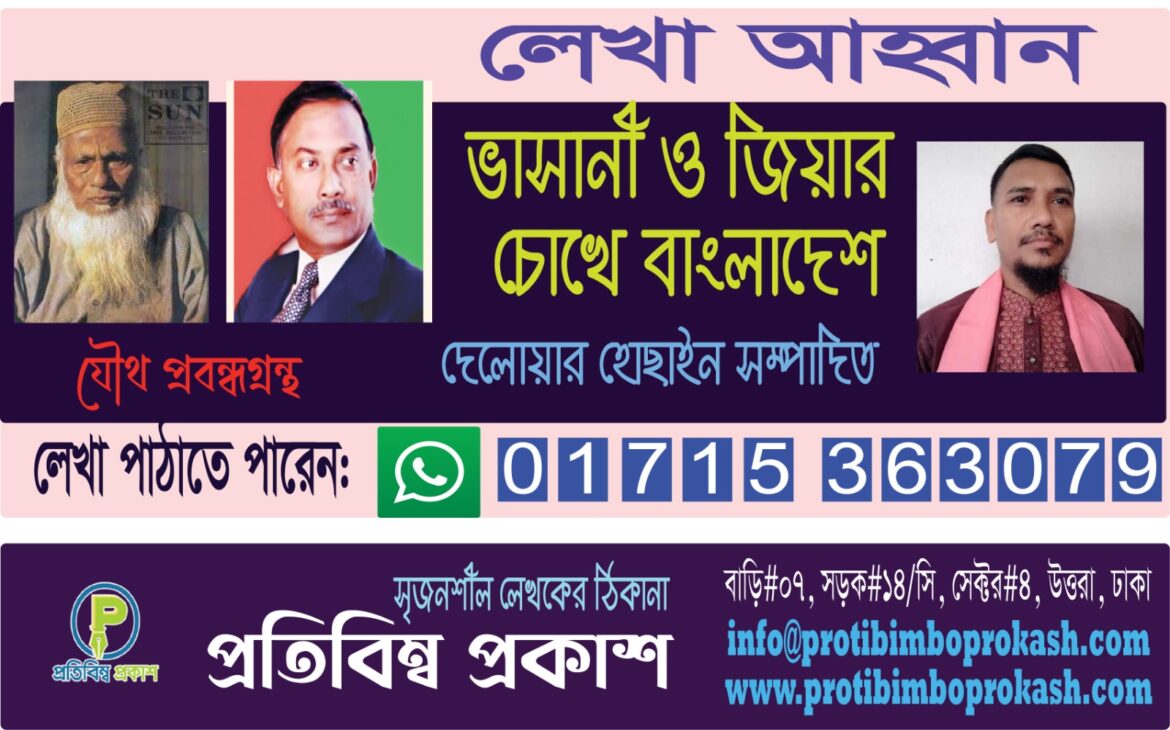 লেখা আহ্বান, ভাসানী ও শহীদ জিয়ার চোখে বাংলাদেশ; দেলোয়ার হোছাইন সম্পাদিত। যৌথ প্রবন্ধগ্রন্থের জন্য লেখা পাঠাতে পারেন।