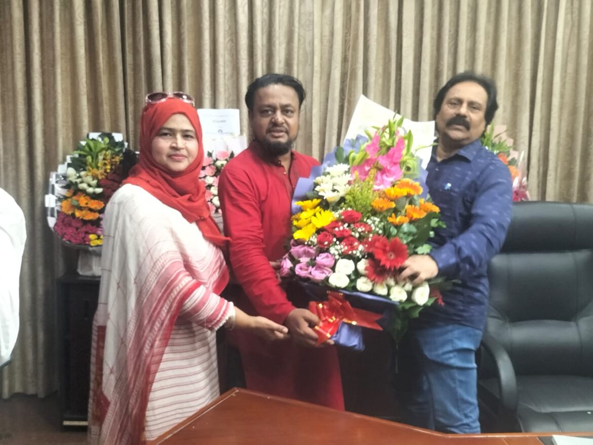 শিল্পকলা একাডেমির নবনিযুক্ত মহাপরিচালক কবি রেজাউদ্দিন স্টালিনকে ফুলেল শুভেচ্ছা জানিয়েছেন কবি আবুল খায়ের।