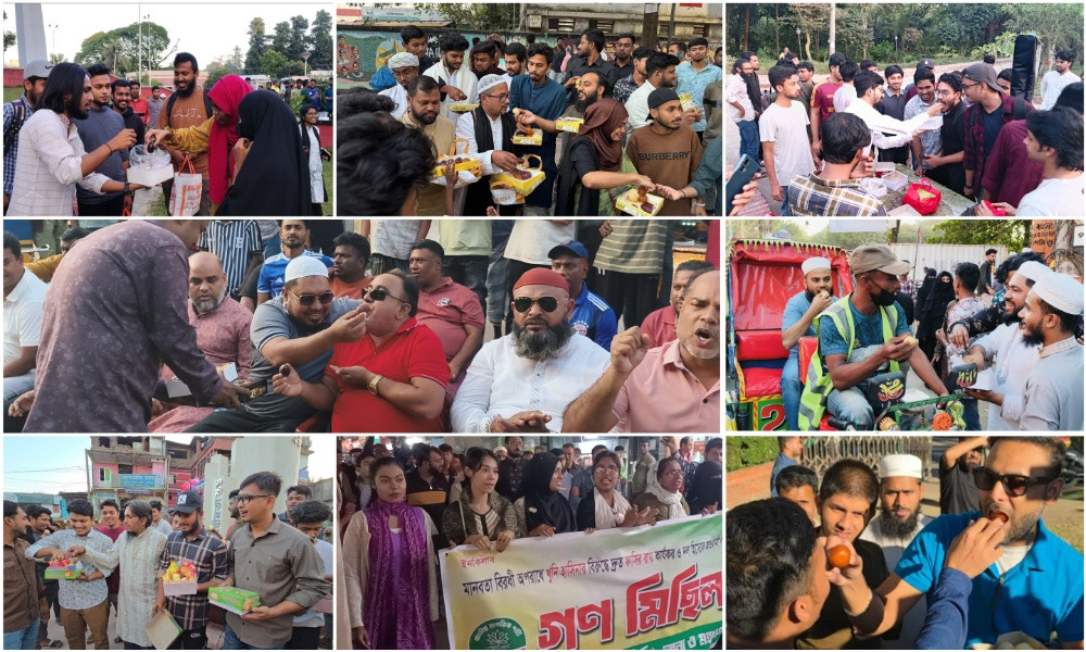 জুলাই-আগস্টে গণহত্যার দায়ে মানবতাবিরোধী অপরাধের মামলায় ক্ষমতাচ‌্যুত সাবেক প্রধানমন্ত্রী শেখ হাসিনা ও স্বরাষ্ট্রমন্ত্রী আসাদুজামান খান কামালের ফাঁসির রায়ে সিলেটে মিষ্টি বিতরণ ও আনন্দ মিছিল করেছে এনসিপি ও ছাত্রশিবির।