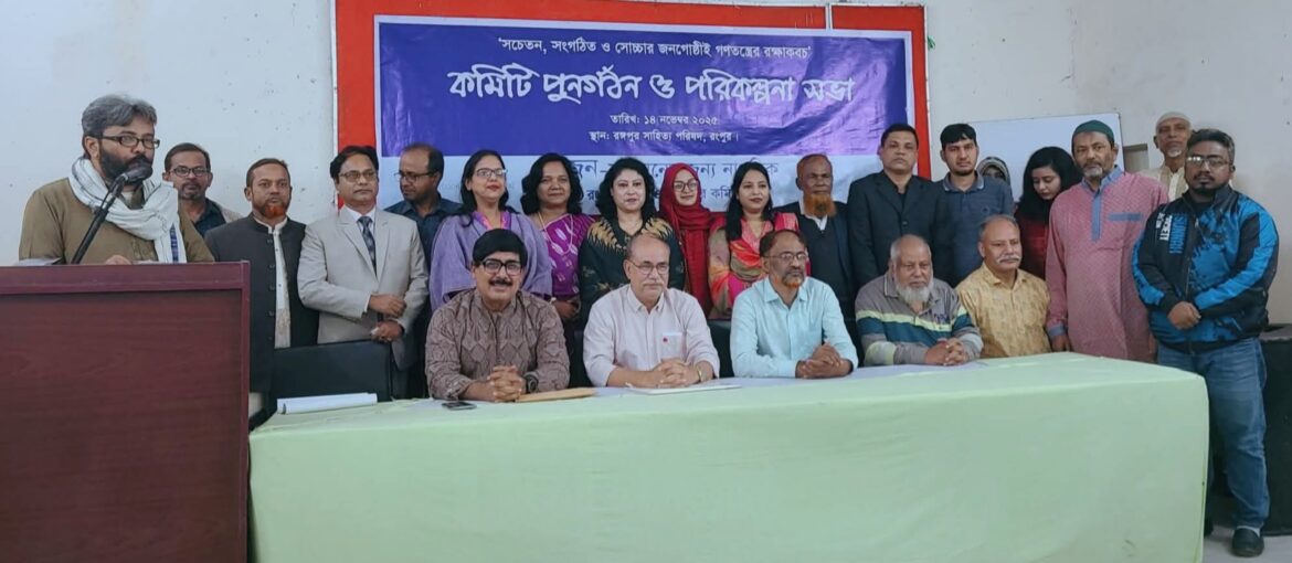 সুশাসনের জন্য নাগরিক-সুজন এর রংপুর জেলা ও মহানগর কমিটি পুনর্গঠন ও পরিকল্পনা সভা গতকাল ১৪ নভেম্বর ২০২৫ রংপুর পাবলিক লাইব্রেরি মিলনায়তনে অনুষ্ঠিত হলো। কমিটি পুনর্গঠনের জন্য গঠিত ৮ সদস্যের সাবজেক্ট কমিটির একজন হিসেবে রংপুর মহানগর কমিটি ঘোষণা করা হয়।