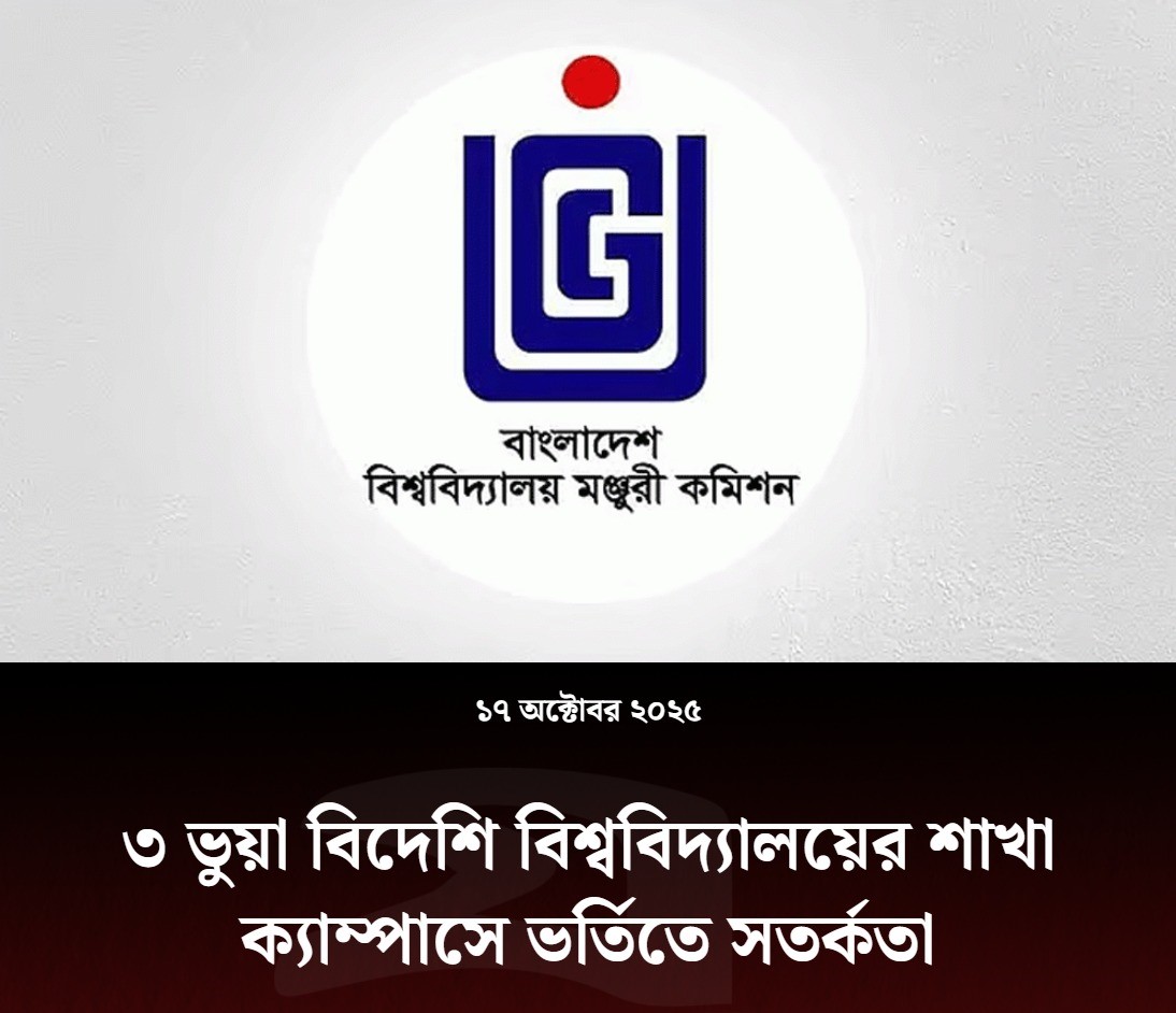 বাংলাদেশে তিনটি ভুয়া বিদেশি বিশ্ববিদ্যালয়ের শাখা ক্যাম্পাসে শিক্ষা কার্যক্রম পরিচালনার তথ্য পেয়েছে বিশ্ববিদ্যালয় মঞ্জুরি কমিশন (ইউজিসি)। এসব বিশ্ববিদ্যালয়ে ভর্তিতে সতর্কতা জারি করেছে ইউজিসি।